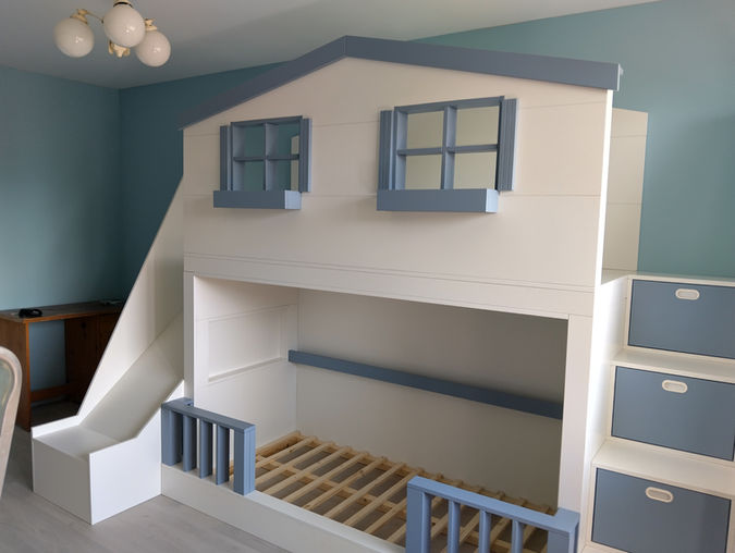 Ние от фирма Бикрав ви представяме наш реализиран проект на детско легло с площадка за игра и пързалка